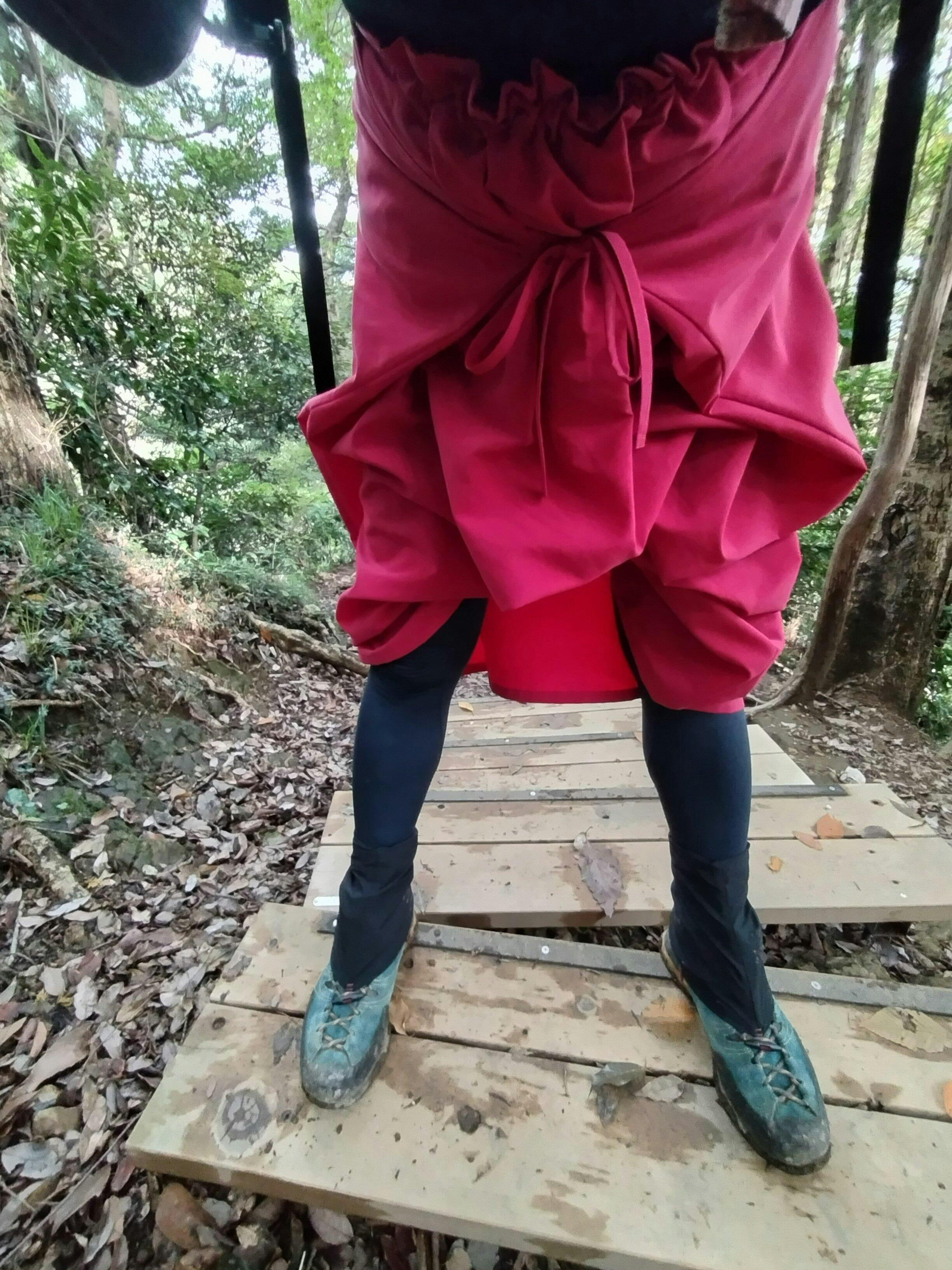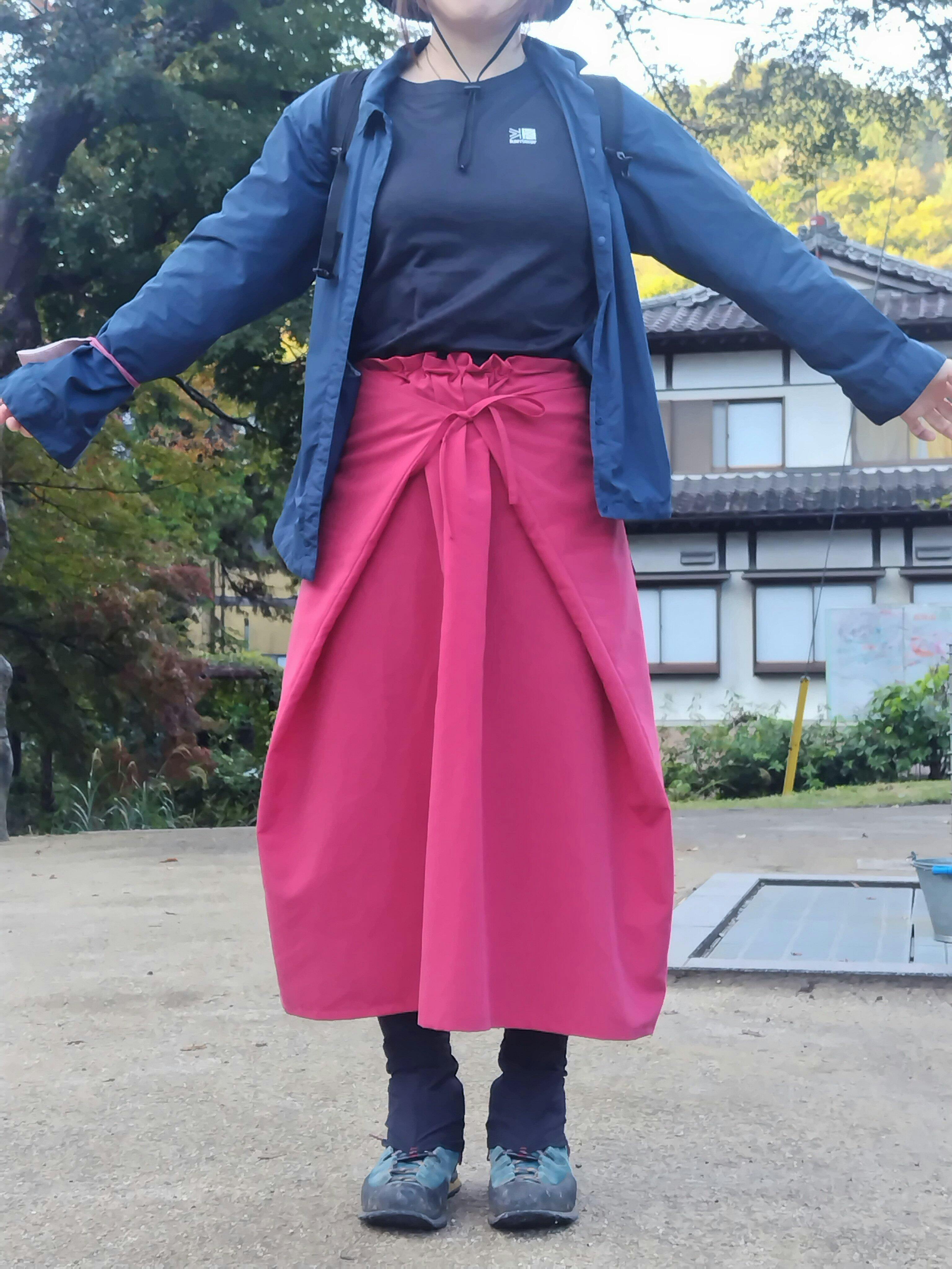 登山パンツはしっかり身体のラインが出ますし、山スカートは基本的に1枚地なので、腰回りのラインがどうしても出てしまいます。