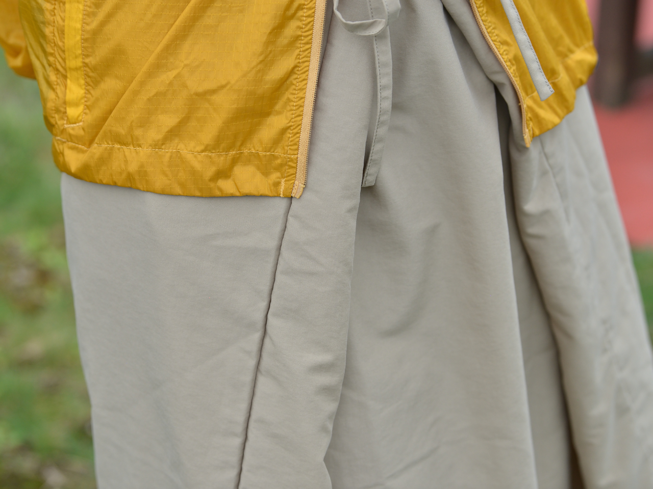 ウエストのゴムをドローコードで絞るだけの仕様なので、パッとウエストに合わせられます。