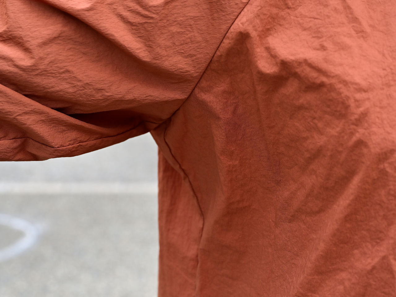 大手アウトドアブランドでも「セットインスリーブ」と言われる、肩の頂点部分に縫い目がくる縫製になっているシャツが多く見られます。